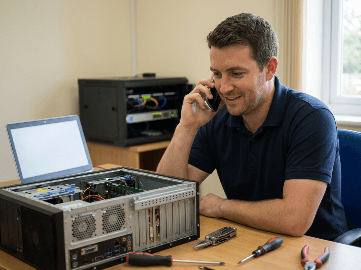 We sluiten aan op wat er bij jullie speelt: soms beginnen we met IT‑opkoop van opgestapelde hardware, soms met een quickscan op de hardwarelijst en soms met een bredere lifecycle‑inventarisatie.